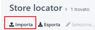 Una volta installata, potrai inserire i dettagli dello store dal percorso Ecommerce > Storelocator del backoffice e cliccare sul comando: