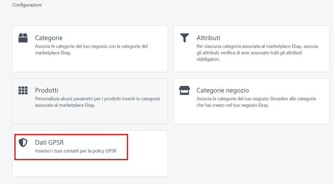 Nel caso in cui non fossi in possesso dei dati richiesti, potrai richiederli direttamente a eBay, che fornirà le informazioni necessarie per completare la configurazione (Consulta la pagina di eBay sulla policy GPSR per saperne di più).