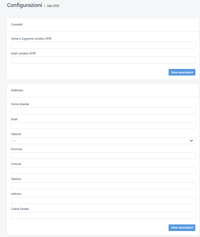All'interno di questa sezione troverai una nuova area denominata Dati GPSR: