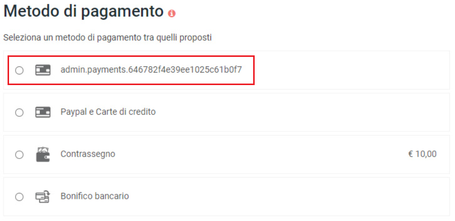 Una volta configurato, potrai inserire la Chiave di traduzione relativa al gateway di pagamento, che sarà visualizzata dai tuoi utenti in fase di acquisto.