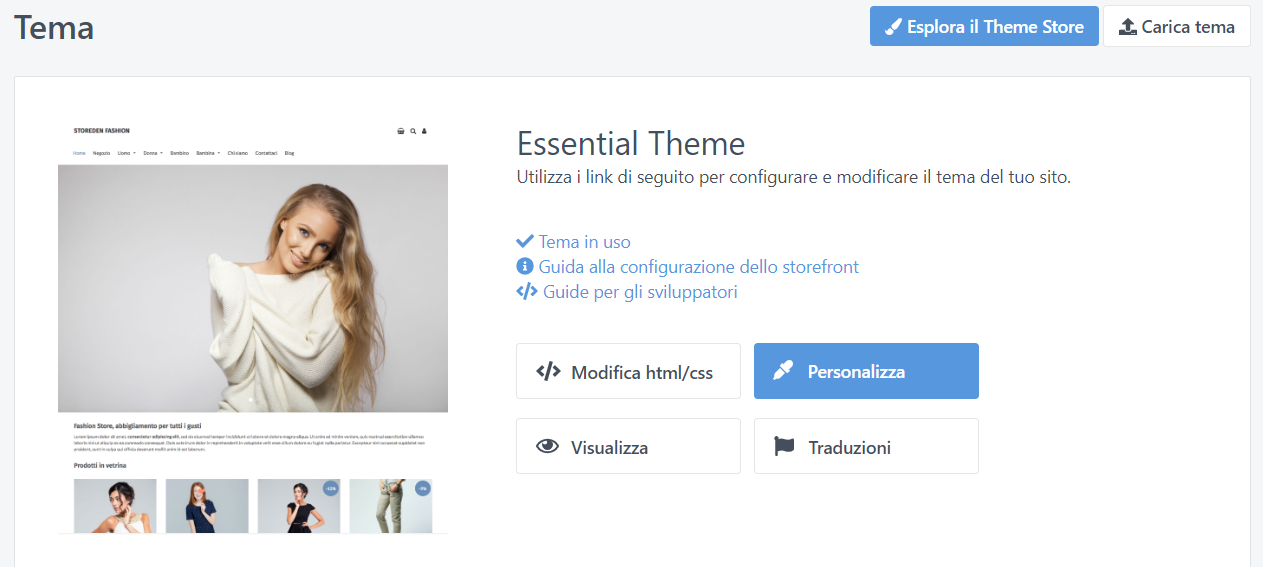 - Al percorso ECOMMERCE > TEMA > PERSONALIZZA