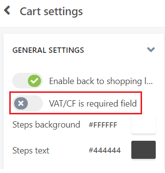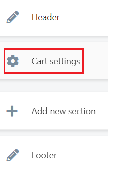- Seleziona Cart Settings per accedere alla configurazione del carrello: