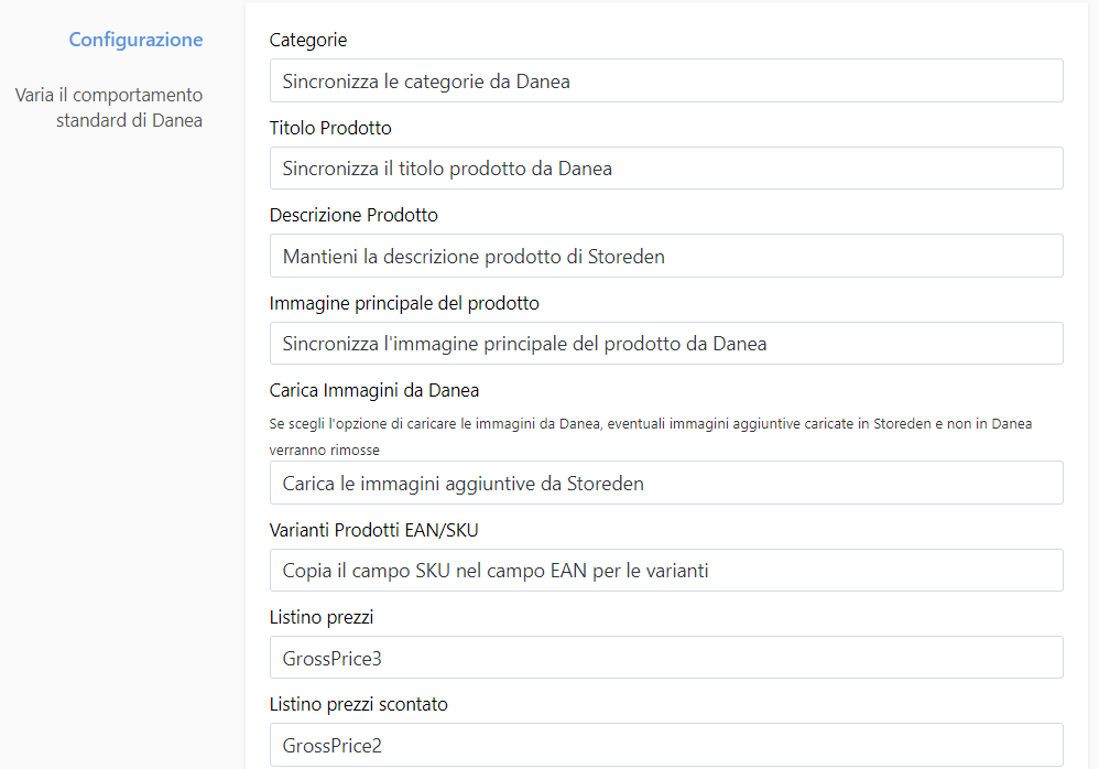 - La sincronizzazione del catalogo da Danea Easyfatt a TeamSystem Commerce è di fatto una sovrascrizione delle informazioni. La sincronizzazione di un campo lasciato vuoto sul gestionale comporta la cancellazione di quanto popolato su TeamSystem Commerce (sempre che la sincronizzazione di quel singolo parametro sia abilitata).