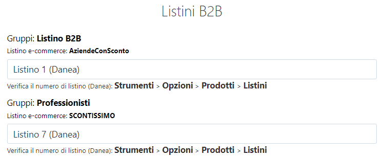 Listini B2B: questo parametro si abilita solo se su TeamSystem Commerce è stato creato almeno un listino B2B per mezzo dell'apposito modulo. In questo caso si avrà la possibilità di importare uno o più listini B2B da Danea Easyfatt secondo la logica del punto 4.