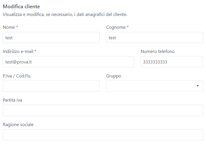- I dati anagrafici del cliente, che sono totalmente modificabili:
