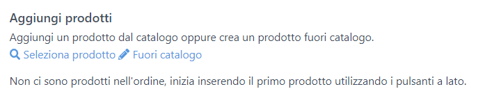 Scegli quali prodotti aggiungere all'ordine, prodotti già presenti all'interno del tuo catalogo oppure fuori catalogo: