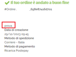 Questa sarà visibile al termine dell'ordine, nel riepilogo di conferma: