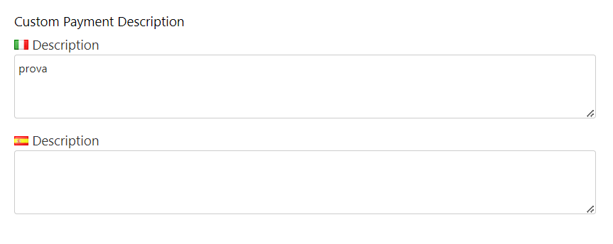 Compila la sezione Custom Payment Description per inserire una descrizione aggiuntiva: