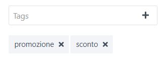 Per associare un tag ad un prodotto è sufficiente accedere alla scheda dell'articolo, posizionarsi alla sezione Tags, inserire la parola chiave desiderata nel riquadro e premere Invio; così facendo il tag sarà creato e potrò poi associarlo a tutti gli articoli desiderati, senza alcun limite.