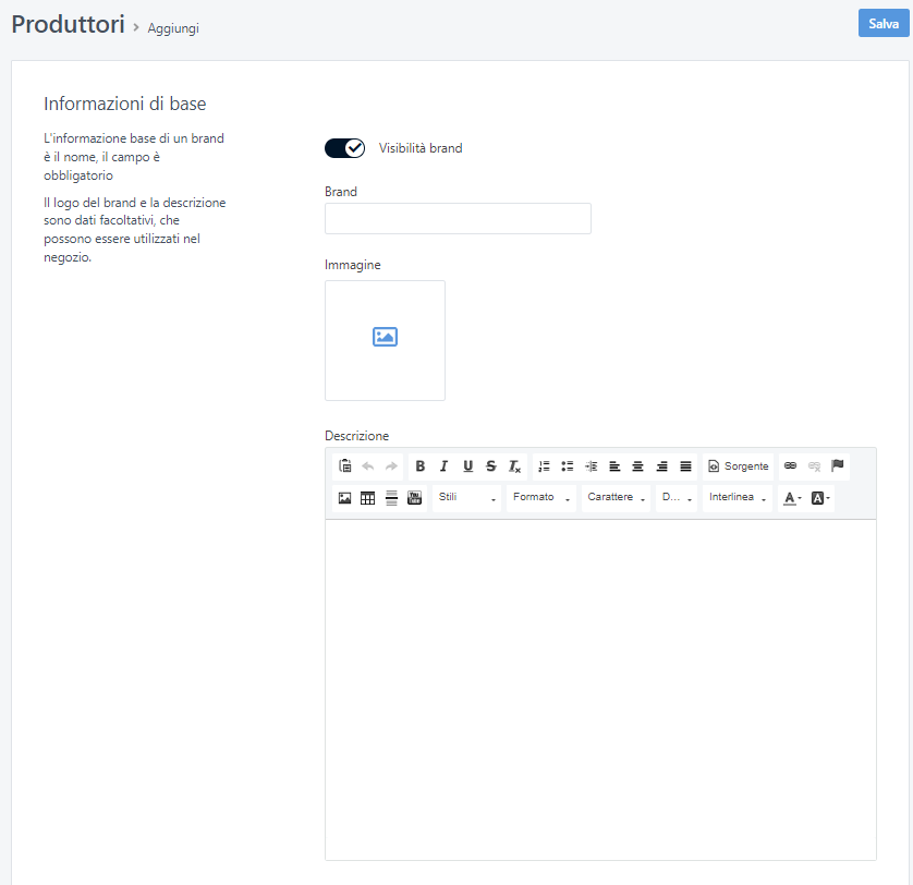 Al percorso CATALOGO > PRODUTTORI potrai aggiungere o modificare i brand dei tuoi prodotti.
